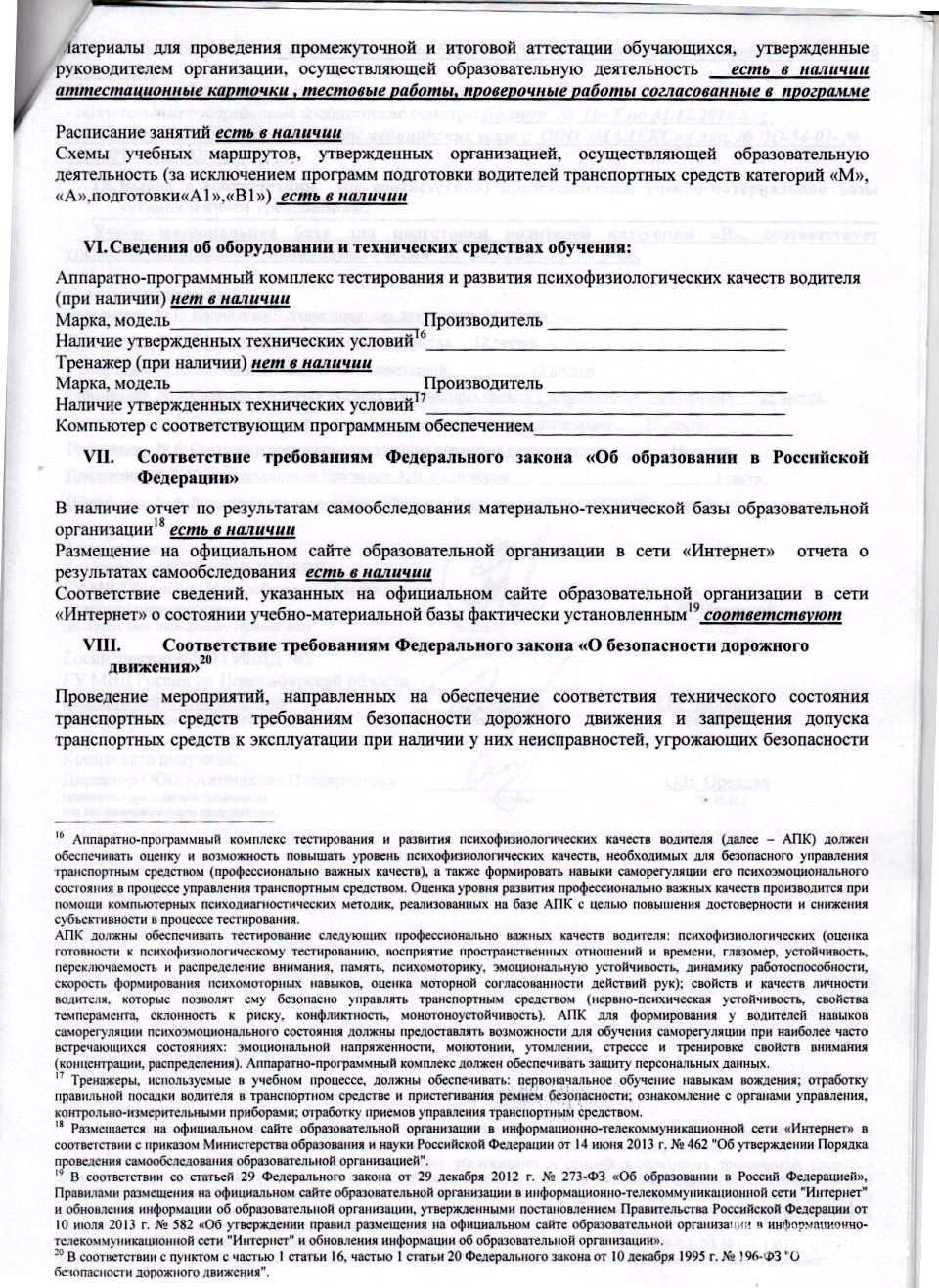 Сведения об автошколе