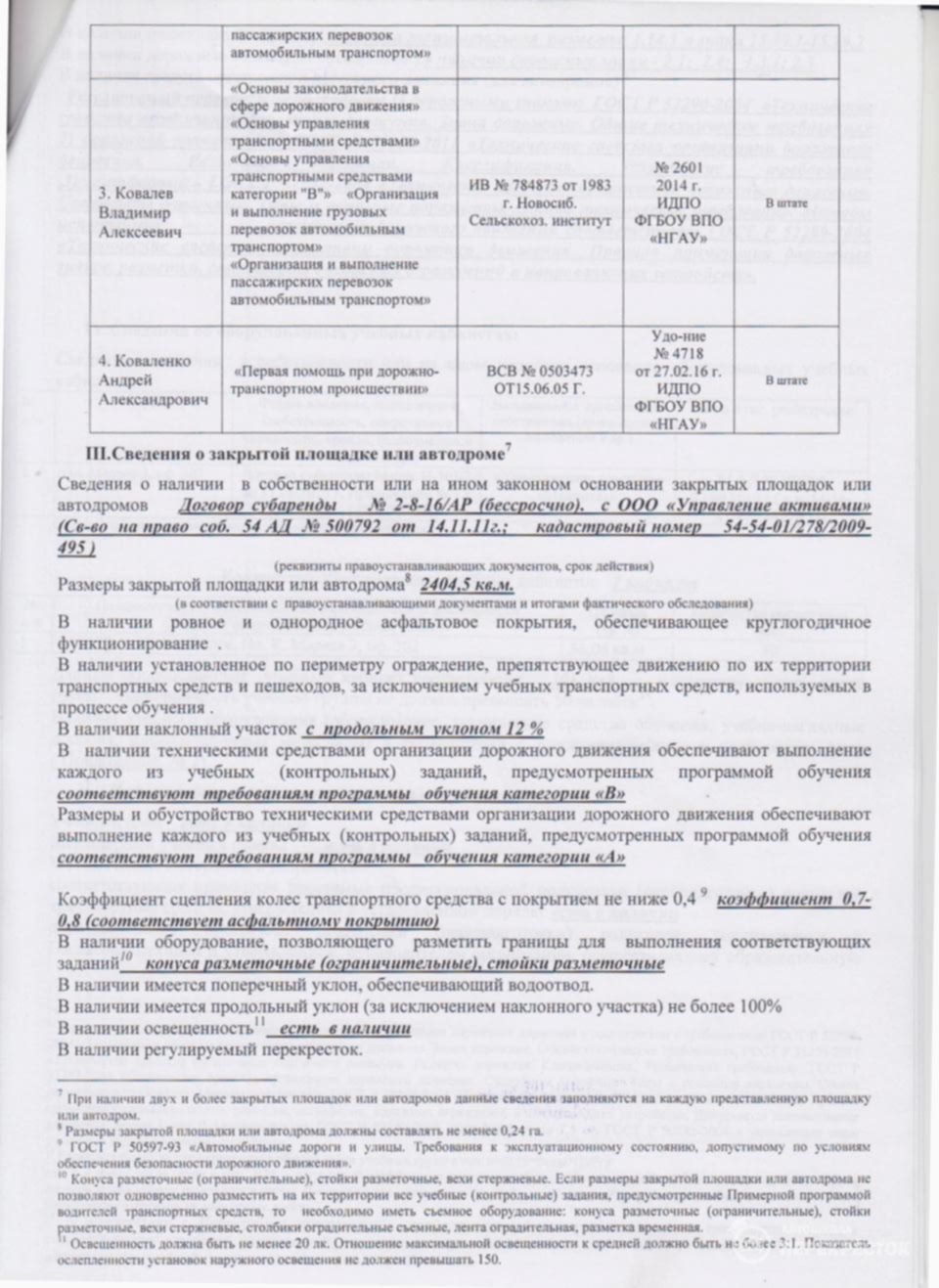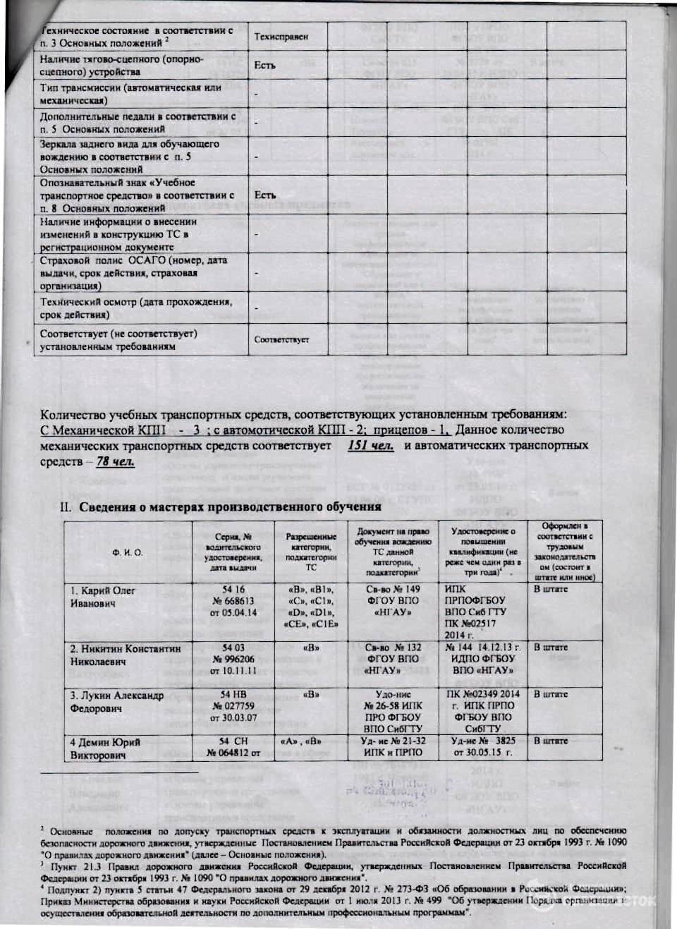 Инструкторы и автопарк